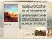 Программа, посвященная творчеству русского художника-основоположника русского лирического пейзажа А.К. Саврасова, включает статью, каталог и краткую летопись жизни и творчества художника. В каталоге представлены наиболее известные работы живописца из собраний Русского музея и Третьяковской галереи. Каталог содержит хронологический и алфавитный указатели произведений. Разделы программы: